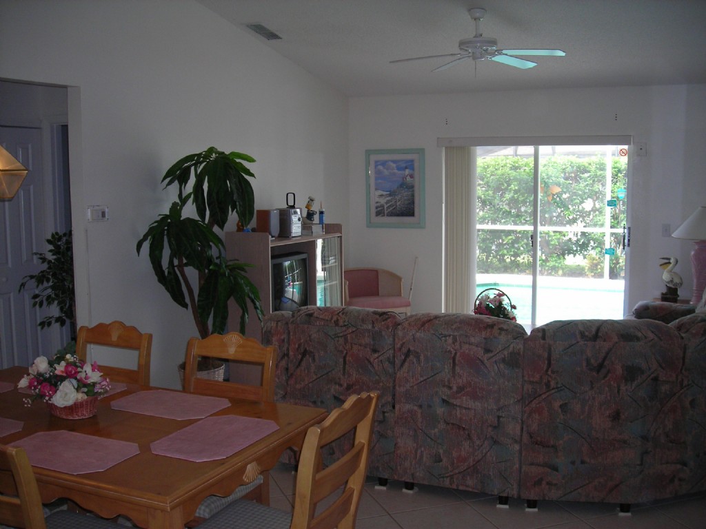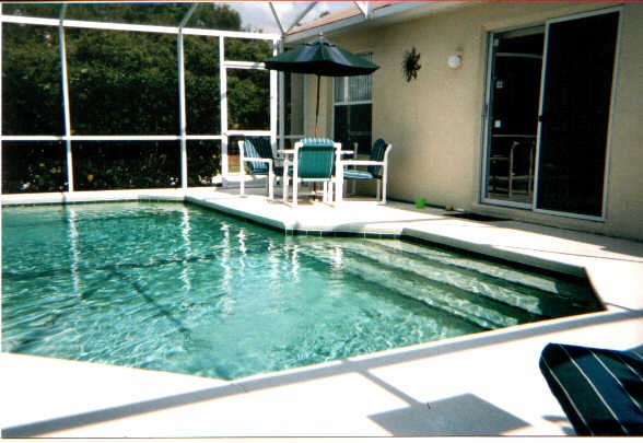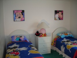 Luxury Florida vacation home with screen enclosed private pool in the Orlando Disney area. This smoke free home has 3 bedrooms and 2 full baths. The master bedroom has a Queen sized bed. The 2 guest bedrooms each have 2 Twins with ‘Mickey’ décor. The great room includes a family room and a separate dinning area. The amenities include a 27 inch TV with DVD/VCR and a stereo CD player. There is an assortment of children’s movies, books and board games. All linens and towels are provided. There is a crib, high chair and strollers.