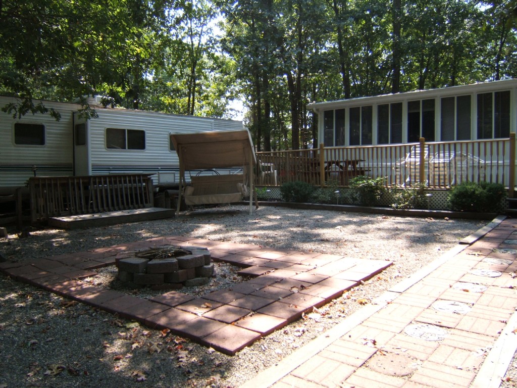 Stay in one of the largest campsites in the resort, centrally located to all activities with a view to both the ball field and hoops court. Featuring a large deck and 4 season room perfect for cooling off in the summer or avoiding summer showers. Other amenities include queen sized bed, pull-out couch with double mattress, and 2 twin sized beds in living area;2 televisions with cable; DVD; gas grill; picnic tables; fire ring, swing and access to all activities sponsored by the campground.