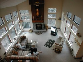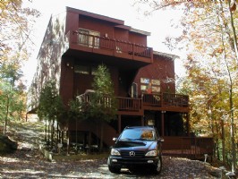 Saw Creek Estates 5-Star Vacation Home! Bushkill, Pa 18342 near Camelback & Shawnee Resort. This Large luxury home (4000 sf) has a beautiful waterfall view! It is a modern California Contemporary,