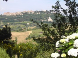 The farmhouse’s position at 500 meters above sea level ensures mild weather with cool breezes during the hot summers. The property offers stunning panoramic views overlooking the hillside town of Montepulciano, the temple of San Biagio, Valdichiana and Cortona.