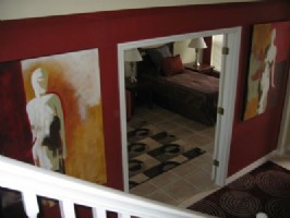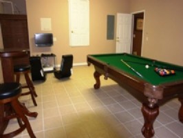Downstairs: Family area, Kitchen, Games room, Master suite (King size bed), masteren-suite bathroom and shower, Front bedroom for the infirm or the disable person (one extra long twin bed with Tempempurdic matress and a Queen size sleeper sofa), en-suite roll-in shower for the disabled person.