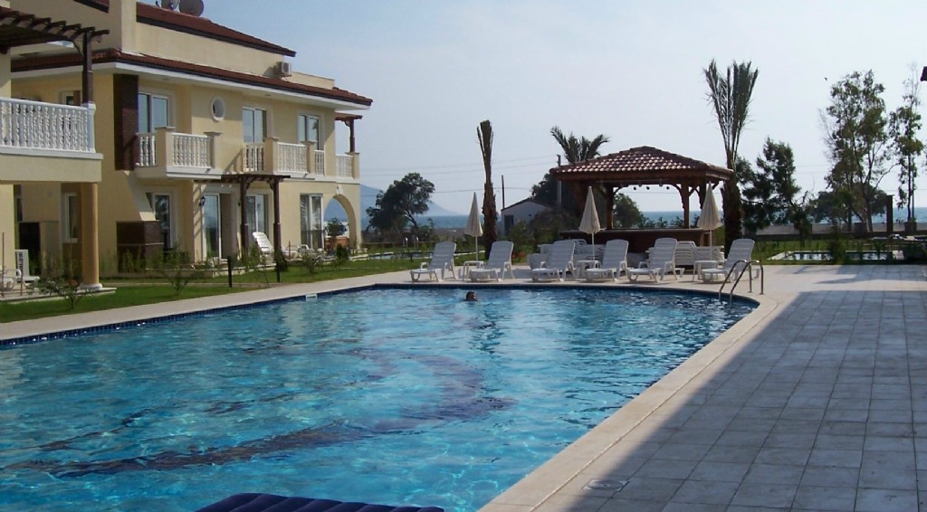 This lovely, spacious air-conditioned villa is set within the beautiful Seaside complex and is only 40 metres from Calis beach. There are 3 large communal freshwater swimming pools and a children’s pool, thus offering plenty of room to swim, sunbathe, and relax. The villa has 4 balconies providing spacious outdoor seating areas with views over the sea and mountains. The ground floor terrace has tables and chairs and a built in BBQ, ideal for alfresco dining on warm summer evenings. This luxury three floor villa is comfortably furnished with all the facilities that you will need for an enjoyable and relaxing holiday. All 3 bedrooms are en-suite and have air-conditioning with plenty of wardrobe space. The kitchen is fully fitted and comes complete with dishwasher, cooker, oven, fridge-freezer and microwave. The villa also has satellite TV/DVD a safe and a washing machine