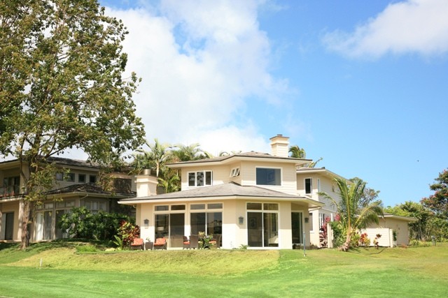 Upscale 3600 sq ft executive home with panoramic white water views overlooking the Prince Golf Course and Anini Beach. Located in the prestigious gated Princeville Kauai north shore community of Queen Emma's Bluff. Rent this wonderful home in Kauai.