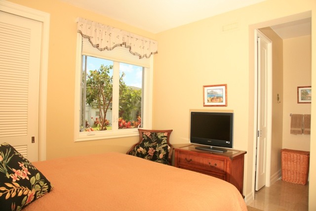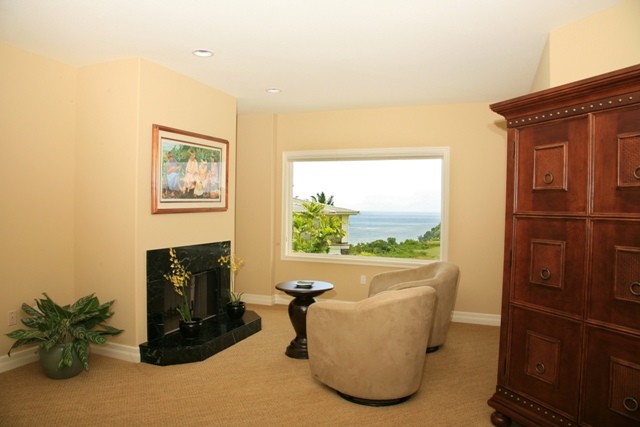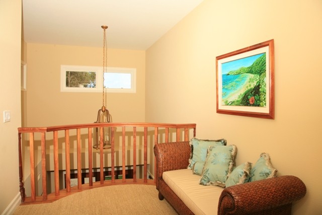 * Three bedrooms - The upstairs 1400 sf master bedroom suite with king bed overlooks the Pacific Ocean, Anini beach, the Prince golf course and the Makaleha Mountains. Downstairs is a guest master suite with queen bed and queen sleeper sofa in den.