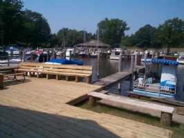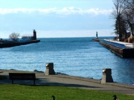 128 feet on the black river, which goes in the Lake Michigan. I have many decks and board walks with benches overlooking the river. We have a fire pit and outdoor grill. For complete descriptions go to the website