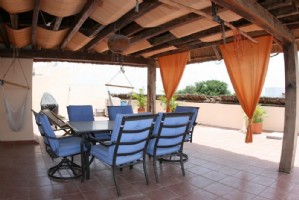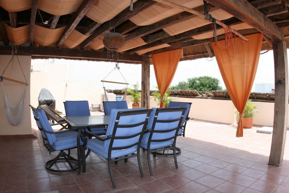 This unit is outfitted with all the amenities you might expect at home! Tastefully decorated and painted, this Air Conditioned unit offers a relaxing atmosphere. The upstairs, rooftop solarium offers a BBQ grill and large palapa covered sitting area perfect for outdoor living and dining!