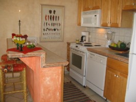 Our condo is fully-equipped for your enjoyment and has a queen-size bed in the bedroom with a sleeper sofa in the living room. There is also a flat screen TV with satellite/HBO. The bathroom has a convenient sink and vanity area separate from the tiled shower.