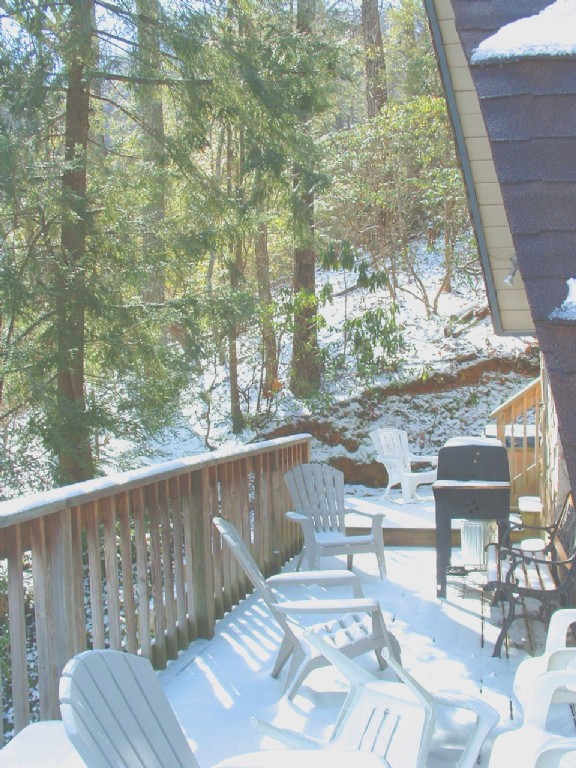 Our Chalet is a large A-frame design. It has three levels with a bath on each level. The first level has 2 bedrooms (1Q, 1F), a full bath and a laundry facility (washer and dryer). The main level has 2 bedrooms (2Q's), a full bath, the living/dining room,gas fireplace with sunken living room, kitchen, and decks which surround 2 sides of our home, and the hot tub. The 3rd level has a bedroom (1K + couch), plus a bed (1F + loveseat) on the loft, a bath. The game room is its own room off this level and has a futon + couches. Our cabin is close to all the area attractions(Dollywood, Pigeon Forge, Cherokee and more). It sits on top of Ski Mountain in the Chalet Village neighborhood and our street ends with the boundry to the National Forrest which allows for an occasional visit from wildlife, i.e. "L'il Smokey", a black bear, that likes to visit our home from time to time in search of their next meal. Eventhough, we are on top of the mountian, we are still only 3 miles from downtown Gatlinburg and 15 minutes to Pigeon Forge.