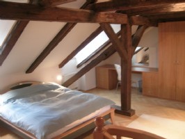 The apartment has 6 sleepings in 2 rooms (2 double beds & 2 single beds, plus a baby cot if necessary) and a parquet floor : on the 1st floor you find the entrance hall, a large living room, the fully equiped kitchen, a bathroom and independent toilets; you access to the 2nd floor with a nice wood staircase : there is a large bedroom with visible beams, a nice bathroom with a bathtub and toilets.