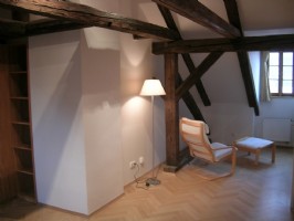 This spacious apartment on two levels on the 3rd floor (gothic stairs without lift) of a 17th Century residence, is really quiet, very bright and offers splendid sights on two sides, on the majestic St. Nicholas baroque church and on the wooded hill Petrin.