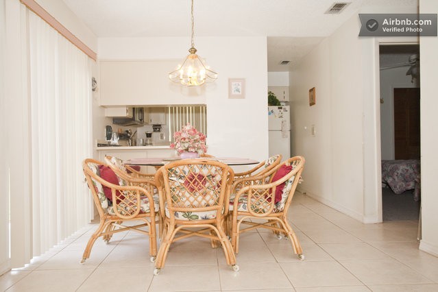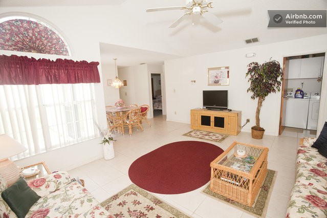 PRIVATE HOME LOCATED IN KISSIMMEE - VERY CENTRAL. SLEEPS 6, UNLESS THERE IS AN INFANT, I HAVE A PORT-A-CRIB. KITCHEN IS FULLY STOCKED, ALL STAINLESS UTENSILS, CHINA DINNERWARE, POTS & PANS, EVEN BAKING PANS IF YOU DESIRE COOKIES. FULL SIZE REFRIGERATOR AND FREEZER, ELECTRIC STOVE WITH LARGE DIGITAL MICROWAVE ABOVE, DISHWASHER, DISPOSAL BLENDER, COFFEE MAKER AND MUCH, MUCH MORE. HAIR DRYERS IN EACH BATHROOM & CLOCK RADIOS IN EACH BEDROOM. LAUNDRY ROOM HAS FULL SIZE WASHER & DRYER PLUS IRON & IRONING BOARD. VAULTED CEILING IN LIVINGROOM, CD/DVD AND 36" REMOTE COLOR TV & WI-FI. WALKING DISTANCE TO CINEMAS, BANKS, RESTAURANTS - OUTBACK STEAKHOUSE, BOSTON MARKET - INTERNET ACCESS. CALL FOR AVAILABILITY. GATED ASSOCIATION POOL.