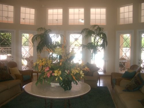 Open Plan Kitchen with Separate Breakfast Nook Overlooking Pool Area