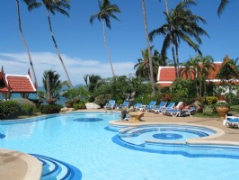 Eight fullyserviced, luxurious Villas in a halfcircle around the designerpool direct at the beach , below palmtrees in a tropical flower garden guarantee the relaxing and familar atmosphere that travellers need who are tired to live in hotels.