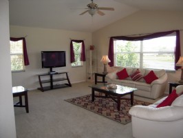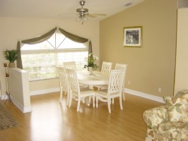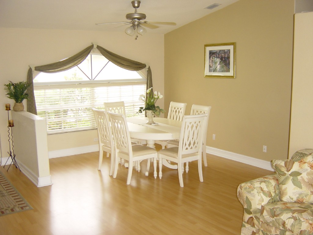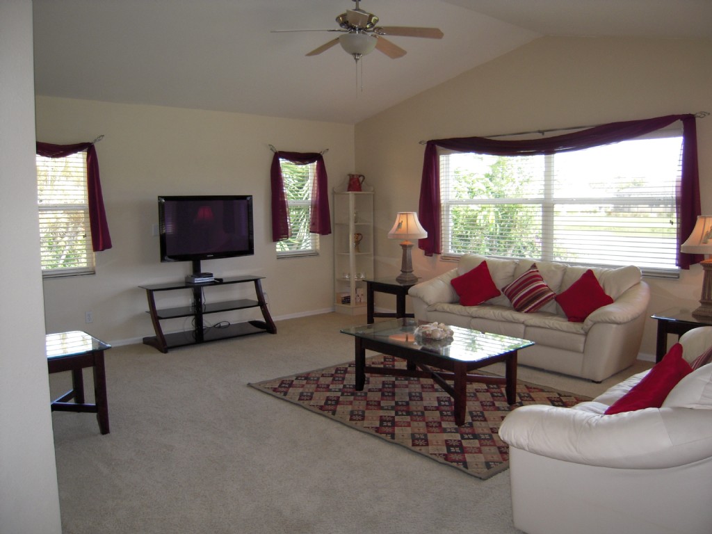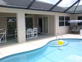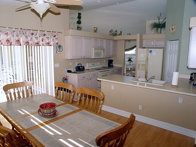 There is a separate Living/Dining room in addition to the Family Room which features Large TV with cable network over 100 channels,DVD and VCR combi. The fully equipped kitchen has a Morning room which leads out onto the lanai and pool area. The lanai area features a built in wet bar and BBQ area with 4 bar stools and Pool side refrigerator which overlooks the heated pool which also has underwater lighting.