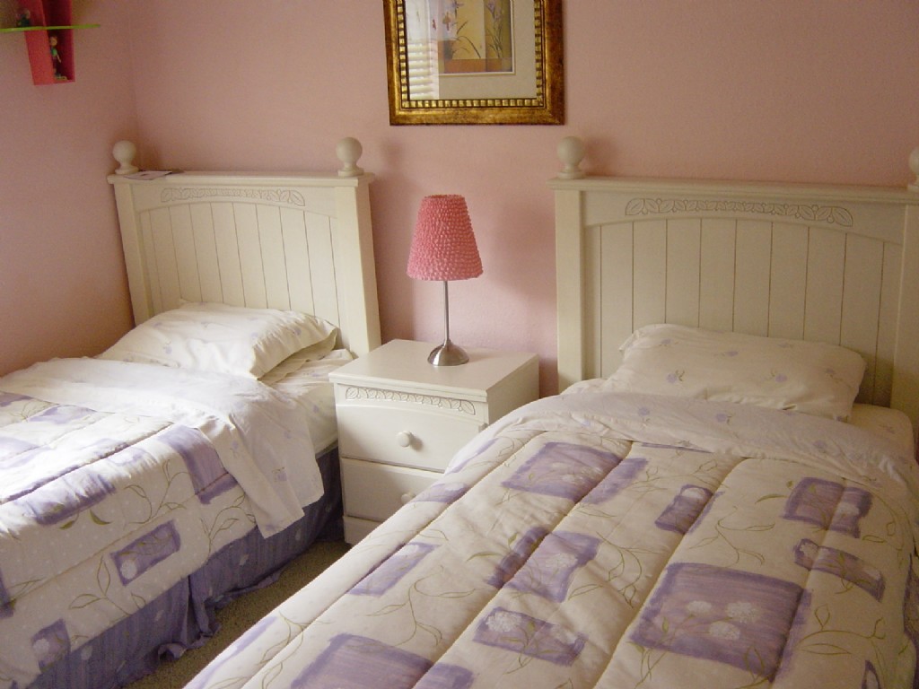 The master suite has a huge king-size bed, walk-in closet,TV,with dresser and pool access via patio doors.The en-suite bathroom has luxury oval tub,large walk-in shower, twin vanity basins separate toilet. The 2nd bedroom has a queen size bed with tv and dvd player the 3rd and 4th bedrooms both have twin beds and chest of draws plus built in closets. The 2nd bathroom has a bath with shower, toilet and vanity basin.