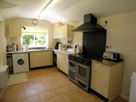 w Large kitchen with rangemaster cooker, fridge, freezer, washing machine, dishwasher, microwave, kettle and iron