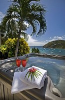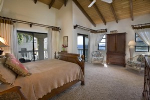 One of Villa St. John’s most unique features is that all of the six bedrooms are 650 square foot master suites (the largest on the island), each with their own two person jacuzzi, walk-in closet, coffee maker, refrigerator, and balcony, offering panoramic views of Chocolate Bay, the Caribbean and a picturesque inlet that accommodates spectacular yachts, a pristine beach and the rhythmic sound of lapping waves of crystal clear water from the Caribbean.