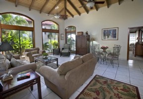 A dream come true, this stunning villa welcomes you with gentle tropical breezes, warm and delicious sunlight to bathe in, sweet floral scents of the tropics and the soothing music of waves caressing the white-sand beach below.