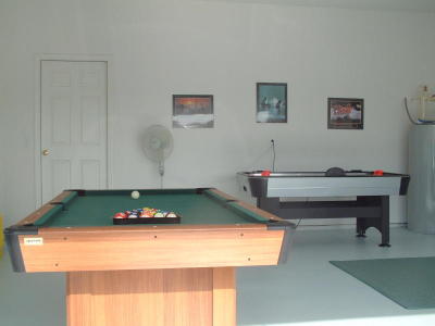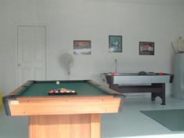 The garage has been converted into a games room (the games equipment can be moved to one side to allow access for one car if required). Pool table, air hockey table, magnetic darts/baseball game, hopscotch mat, fan.