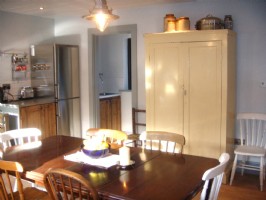 The house has been renovated to offer the highest standard of accommodation yet is sympathetic to its ancient origins. The Original Fireplace which is the centrepiece of the open living room, is a large open stone cooking fire. There are four large bedrooms and four bathrooms, a large traditional kitchen and the original double height living room which over looks the meadow and the bay.