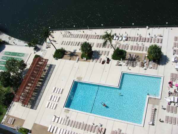 Set in a private bay front condo community. The unit has one reserved covered parking space at no cost, free valet service for guests, concierge and security services, laundry facilities, mini-market, water frontage walk paths, boat dockage, fishing, tennis and basket ball courts, pool with pool attendant, waterfront exercise gym, game room with pool and card tables, computer room, restaurant and deli, on-site management and maintenance.