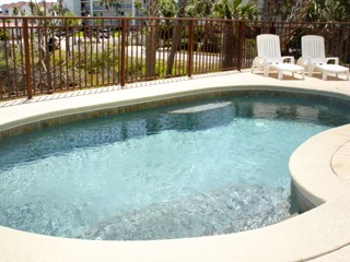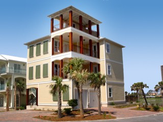 Amor del Mar or "Love of the Sea" is a brand new 3000 sq. ft. home boasting three large porches with beautiful direct views of the Gulf of Mexico. Designed for luxury and comfort and professionally decorated with a Florida ambiance, the home features: travertine marble floors, 10' ceilings throughout, elevator, granite counter tops, stainless steel appliances, private heated pool overlooking the Shipwatch Lake, 2 car garage and the sound of the rolling surf. With no busy roads to cross, you have easy access to the world's most beautiful beaches. Near Sandestin and just a few blocks from the Silver Sands Outlet Mall, it is convenient to all the good restaurants and shopping. As a Crescent Beach Cottage, this home has access to the amenities at the adjacent Crescent Condominiums featuring a lagoon pool, tiki bar, game room, fitness center and more! Come, relax and create your own amor del mar! Accommodations: 1st floor: bonus room with queen sleeper sofa and wet bar just off the private pool, 1 bedroom with 2 twin beds, 1 full bath, laundry room and 2 car garage. 2nd floor: kitchen, living room/dining room with queen sleeper sofa, bedroom with 1 queen bed and 1 bath. 3rd floor: 2 bedrooms with 1 king bed each, study with day bed and trundle and 2 bathrooms; 4th floor: viewing porch. DLP HD big screen TV in living room and flat panel HD LCD TV in wet bar/bonus room. All bedrooms have TVs and each floor has a DVD player.
