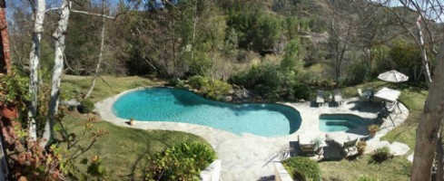 house has large lawns , large lagoon pool and spa ,1500 sq ft master suite , 20 x 50 ft greatroom with pool table, baronial 2 story dining room for 14, gourmet granite kitchen with breakfast area , 6 additional seating/ dining areas , den , playroom/ 6th bedroom , all magnificently furnished down to the last napkin ring , lovely landscaped grounds, seasonal creek with 25ft waterfall, 14 mins to the beach 8 mins to freeway and old town Calabasas, and freeway , private yet easily accessible 1 hour to Santa Barbara, 1 hour to Disneyland, 30 mins to Hollywood and Beverly Hills, used in many movies.