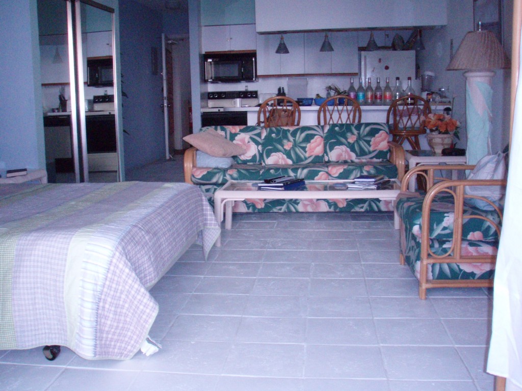 First floor efficiency unit, well maintained, with many new furnishings including queen size Temper-Pedic bed and flat screen TV. Queen size sleeper sofa available for children.