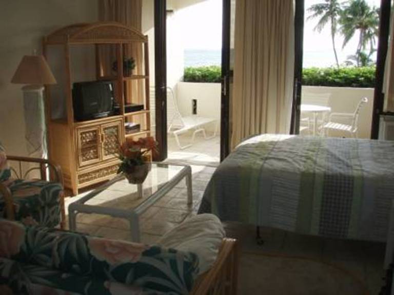 Triple sliding glass doors to the security protected lanai, catches the gentle trade winds that keep you cool as it flows right through the unit.