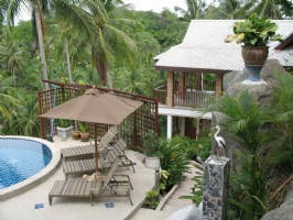 Villa Malee, located on a hilltop near the Royal Samui Golf and Country Club, has been uniquely designed to offer magnificent views of neighboring Chaweng, and the sea, and to take full advantage of the cooling sea breezes. From the rooms of this charming villa, and the upper terrace, the views offer a gorgeous panorama of the ever changing colors of the Gulf of Thailand, Koh Phangan, and the entire Northeastern section of Koh Samui. Sit on the terrace, or by the pool, and enjoy watching the planes taking off and landing at the distant Samui Airport.