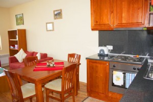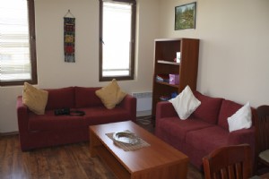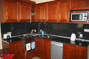 Main Room: Double convertible settee, another 2-seater settee, a table with 6 chairs, TV with at least 3 English-speaking channels, DVD player and a variety of DVDs, internet point (access available for a small weekly fee from the hotel), coffee table and book shelf unit. There is also a wood-burning fire.