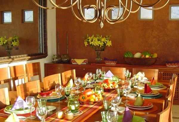 • Two exquisite leather-covered dining tables can be set separately or together as one large table
