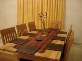 Villa Interior - Downstairs is open plan with a large living area, dining area & kitchen area with excellent, modern appliances. The living area consists of modern comfortable furniture and offers a top of the range flat screen TV with DVD player and facility for Children's games. We also provide a selection of DVDs, CDs and books for all age groups. There is also a downstairs washroom with toilet and sink which is handy for guests coming in from the pool. Upstairs there is 1 double bedroom with en suite bathroom, then a twin room and a triple room which have use of the main bathroom.