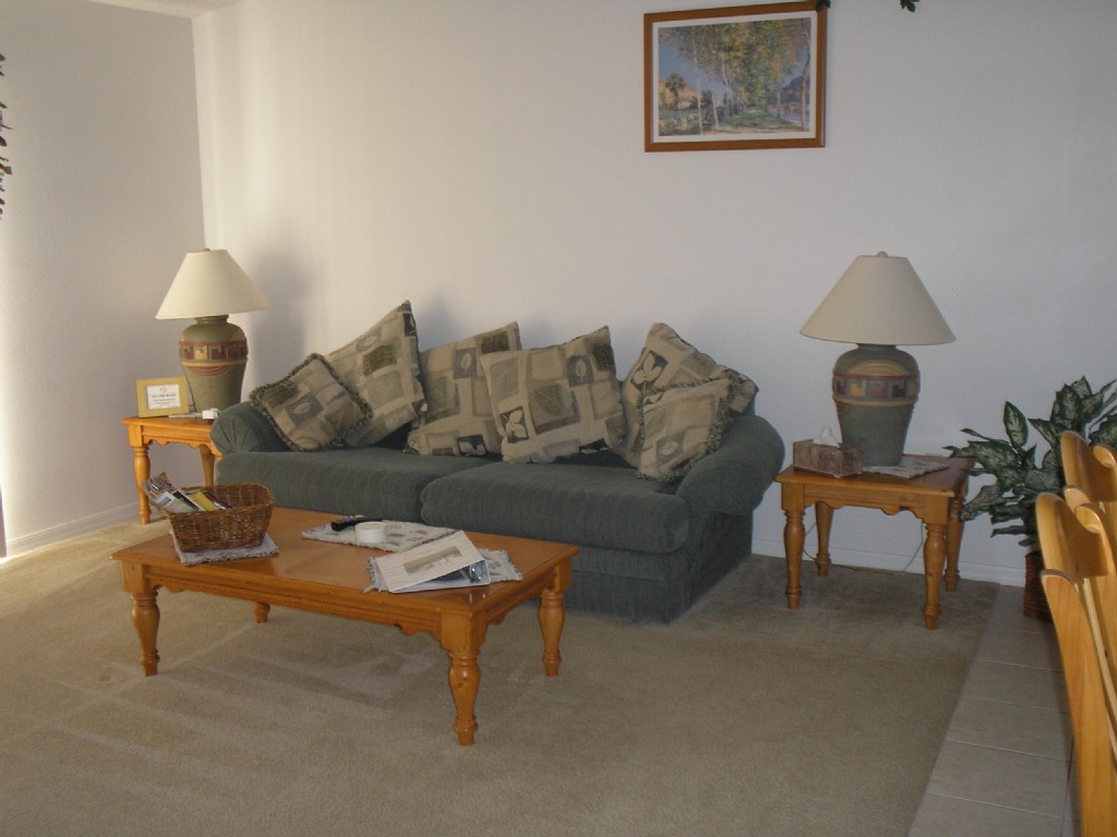 The family room is furnished with two comfortable sofas, coffee tables, lamps, satellite TV,VCR, dining table seating six persons and doors leading to the patio area.