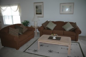 Patio doors to pool area, double sleeper sofa (triple seats) + 2 seated sofa, cable TV, X-Box/DVD, coffee table etc