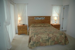 double bed, walk-in closet, dresser and bedside tables, colour TV, double doors to pool area (perfect for a sneaky mid-night swim!) door to: -