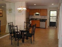 The kitchen/living room area has been updated with tile and stainless steel appliances. The kitchen is fully equipped with a refrigerator, stove, dishwasher, microwave, coffee maker, dishes, pots and pans. Our dining area seats four. The living room area has a TV with a DVD player and extended basic cable. The living room leads out to a large balcony with an outside table with 4 chairs that overlooks the recently renovated tennis courts.