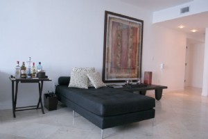 The entire unit, including balconies has Italian marble floors, and is decorated with designer furniture. The living room has two large designer couches, as well as a beautiful day bed, which can also serve as an additional bed. The living room is equipped with a 42’ flat screen TV, DVD and a Yamaha home theater system with ipod connectors, and five Bose surround sound speakers. The walls are decorated with beautiful paintings and works of art. Cable TV provided by Atlantic Broadband offers a broad range of programming.