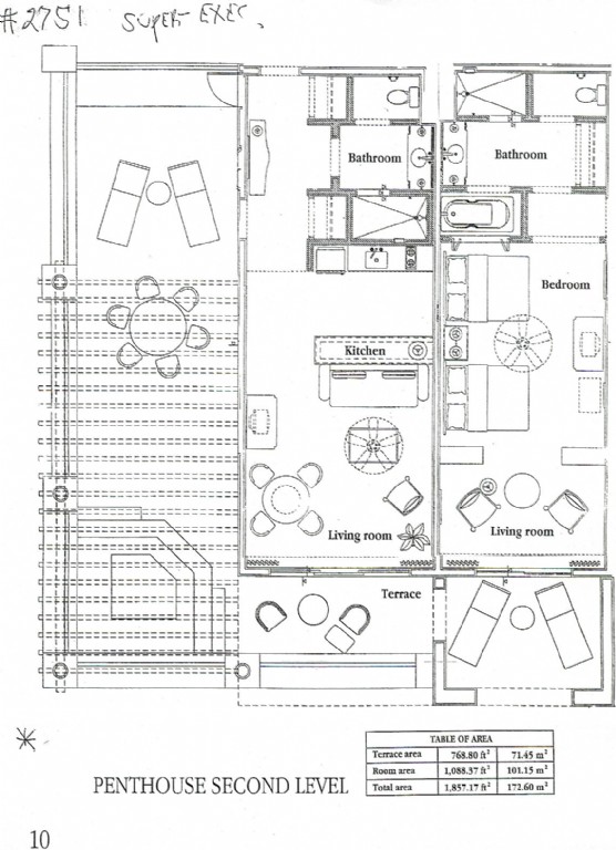 This deluxe timeshare unit is a corner unit on the top floor with 768 Sq. ft. of outside decking complete with a large Jacuzzi overlooking the ocean and coastline. The unit comes complete with a full kitchen and features granite countertops.