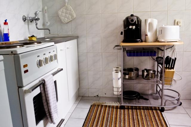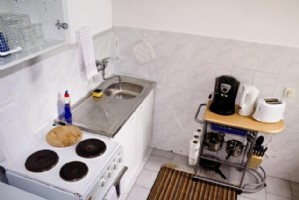 The complete kitchen is separate to the living space and fitted with a conventional oven, electric stove top, microwave oven, kettle, toaster and coffee maker.