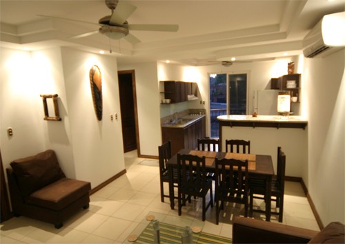 2 bedrooms 2 full baths Sleep 6 very comfortably in 94 m2 Fully equipped and furnished. Beautifully decorated with large terrace in a luxurious condo with swimming pool and Jacuzzi. . Master bedroom with direct access to terrace with bathroom in suite with Jacuzzi, designed wood counter. Complete kitchen with granite countertops, large refrigerator and glass stove. AC units w/remote control plus fun ceiling in each room. Washer and Dryer in the unit. This is a very comfortable and nice apartment to relax and enjoy Tamarindo and it´s surroundings. Rented by Day/Week/Long Term contracts