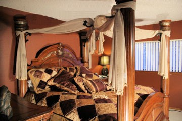 Enter the French doors to the Master Bedroom and you feel like you just walked into your own place away from the rest of the house. Four (4) bedrooms-sleeps seven to eleven (7-11) comfortably = One King, Two Queens, Two Daybeds - one with a trundle. Pillow-top mattresses - Master bedroom has King-size Four Post Bed. Aero Bed - not the cheesy kind- this one is elevated off the floor as high as a regular bed. It sleeps two on the floor wherever. Thirty-two inch Flat Screen Cable TV in Master bedroom. Flat Screen Cable TVs with DVD Players in ALL the other bedrooms.
