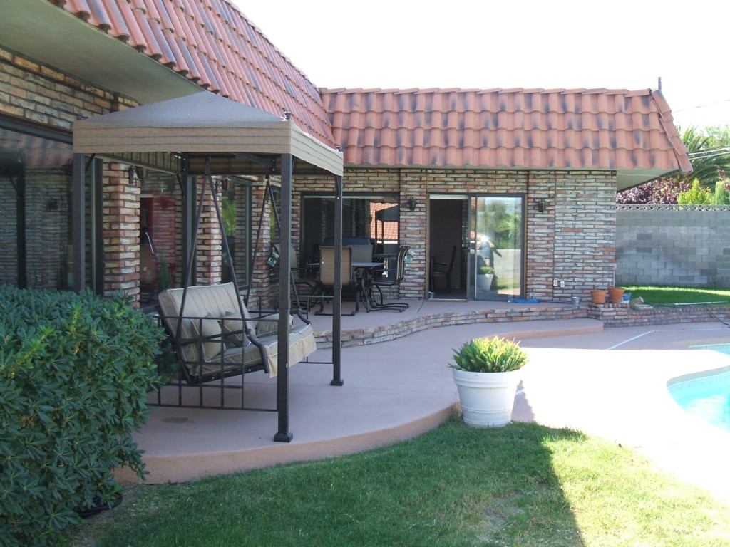 I love to do the Backyard up right as well. There you will find a Gas Barbecue, make the neighbors drool with your special sauce simmering on top of the food- a Patio Set including a huge table and six chairs, a Swing that has its own sun shade and opens up to a BED (fifty bucks off your stay for the first picture of someone sacked out on this thing) and last but not least a huge Gazebo with netting all around to take a break from the sun. Oh Yeah there is a pool too!