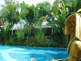 The shared 12 x 6 m salt water pool is set in a beautiful tropical garden. The pool features a waterfall in black stone that is guarded by statues of Sphinx. The under-water Ancient Egyptian Cross of Life - Ankh energizes the water that is meant to bring extra health benefits if not quite an eternal life. Try if that works for you!