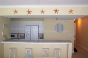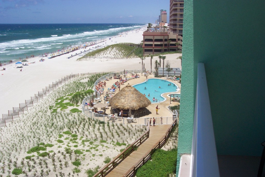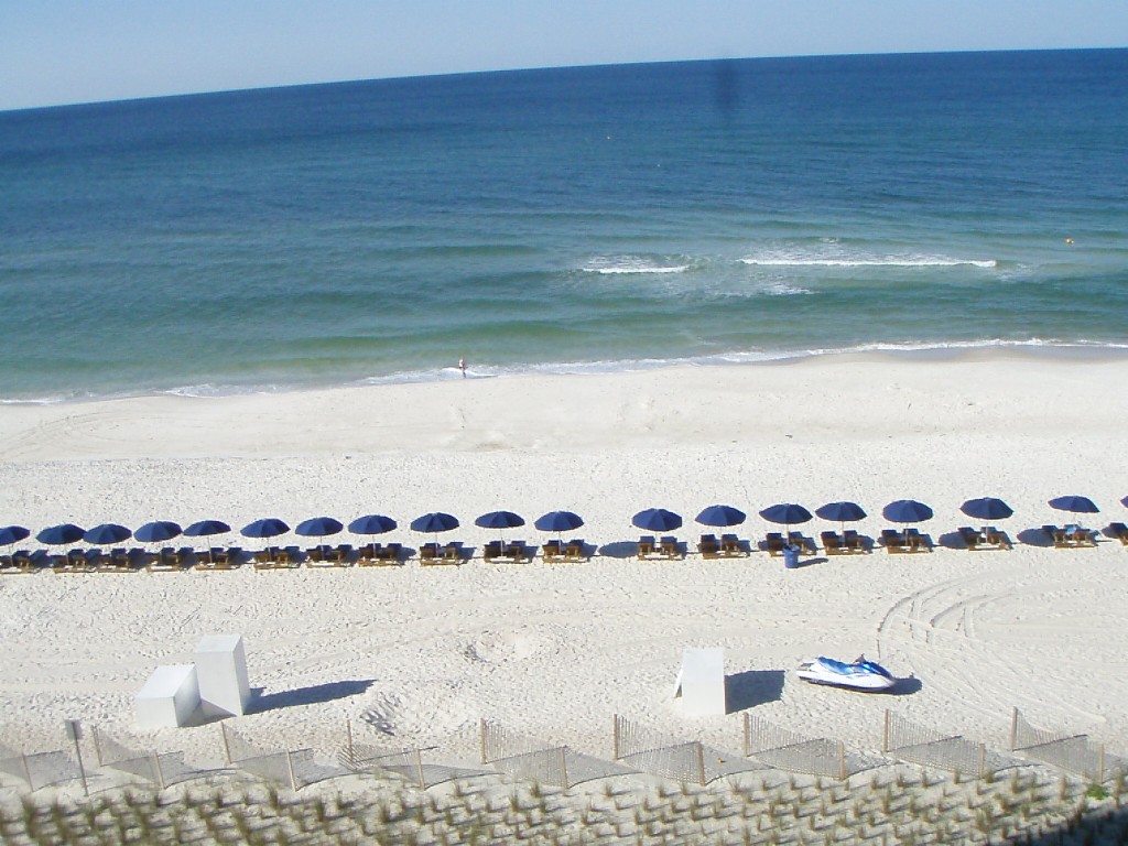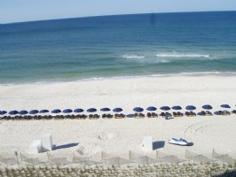 Brand new Gulf-front condo, 6th floor in Panama City Beach - the exclusive Emerald Beach Resort! This condo was new in 2007 and completely decorated by a professional decorator in beach/cottage decor in July 2007. The condo sleeps 6 people (one king, 2 bunks, and a pullout couch.) There is one bedroom with a full private bathroom attached. There is a second full bathroom down the hallway. The kitchen has all white cabinets, with granite countertops, and has all the ameneties for a longer stay. The kitchen is open to the great room, which leads out to the balcony. There are also 2 flat screen TVs with DVD players (one in the great room and one in the bedroom.) The large balcony overlooks the beautiful Gulf of Mexico, the pool, and the Tiki Bar. There is a Starbucks in the complex for morning coffee on the balcony and a brand new modern SkyBar just opened! A new zero-entry kiddie pool with cool water falls just opened on 7/9/08 too! We are currently booking for December 2008 and beyond. December rates are $650 per week or $99 per night. January rates are $109 per night or $700 per week. See our website at www.mistvacations.com for all our rates and availability. Call with any questions you may have or to reserve your vacation time! 586-615-1088 - Stacy.