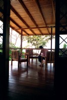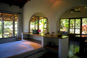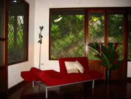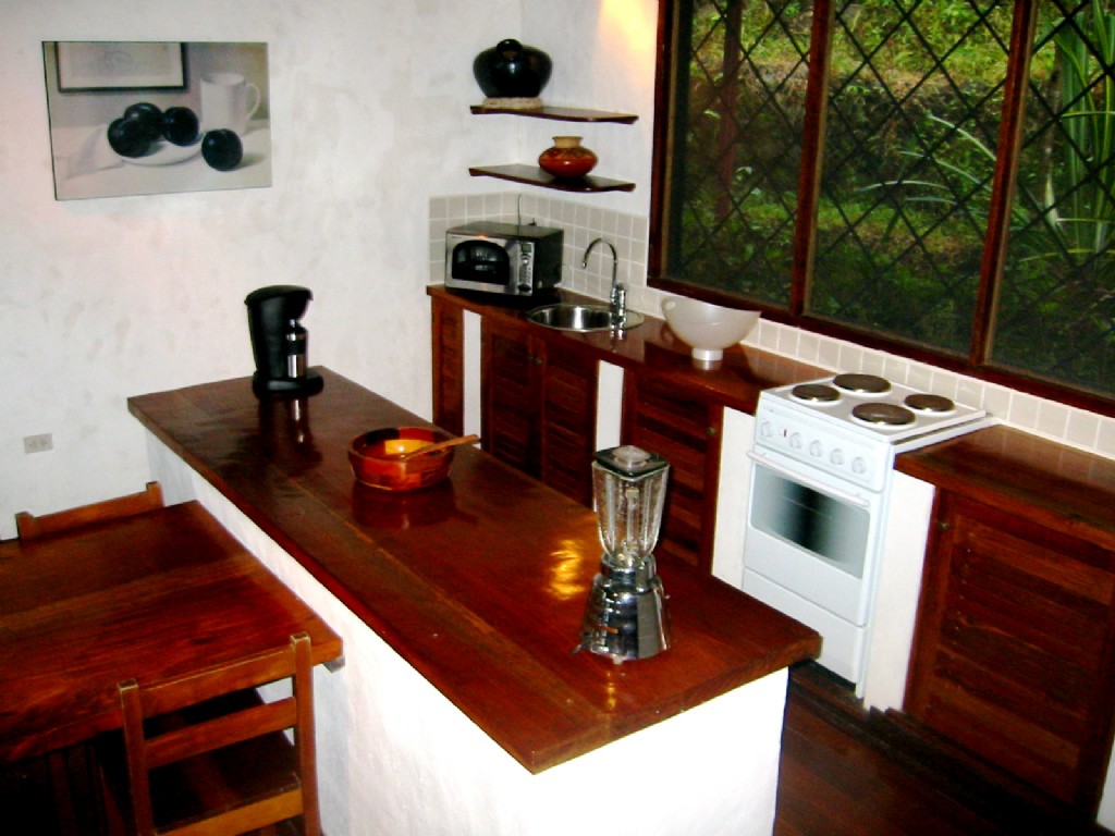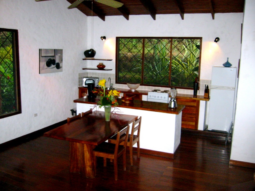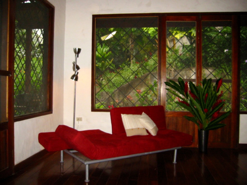Situated off the scenic coastal road, the house offers breathtaking views of Playa Espadilla and the main offshore island. A beautiful large hammock deck, high ceilings and large screened window openings create a spacious and airy atmosphere, beautiful hardwoods, local pottery and halogen accent lighting enhance the interior. Within walking distance you will find most of Manuel Antonio's best restaurants in beautiful outdoor settings, also swimming pools, shops and cafés are nearby. Fully furnished and equipped, our VILLITA offers one bedroom, one bathroom with a great shower and hot water, a large living room / complete kitchen / dining area (Stereo w/iPod-conn. / cable TV / Telephone, Washing Machine, BBQ).