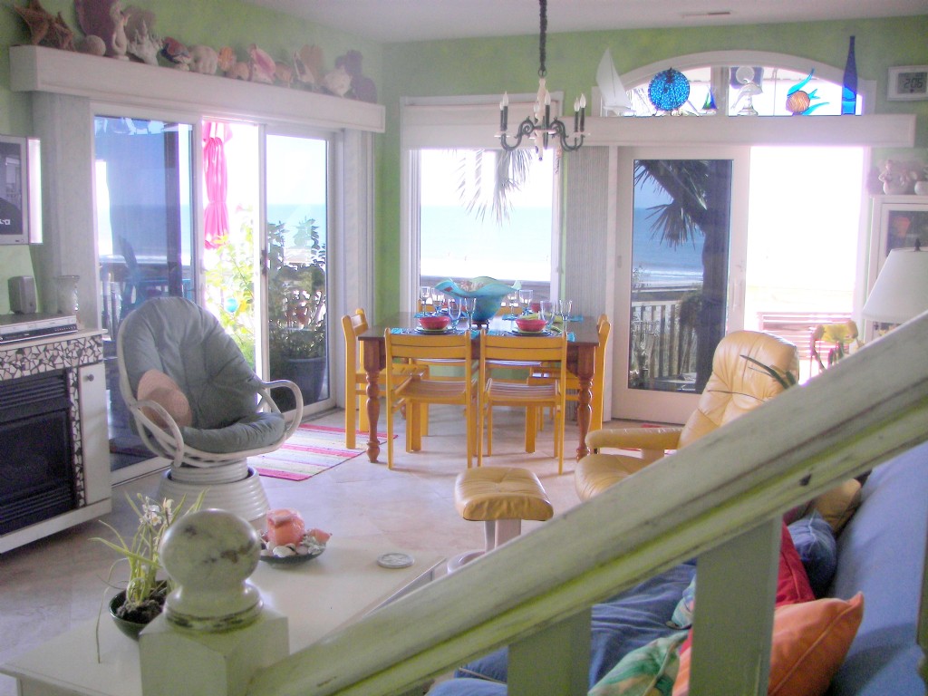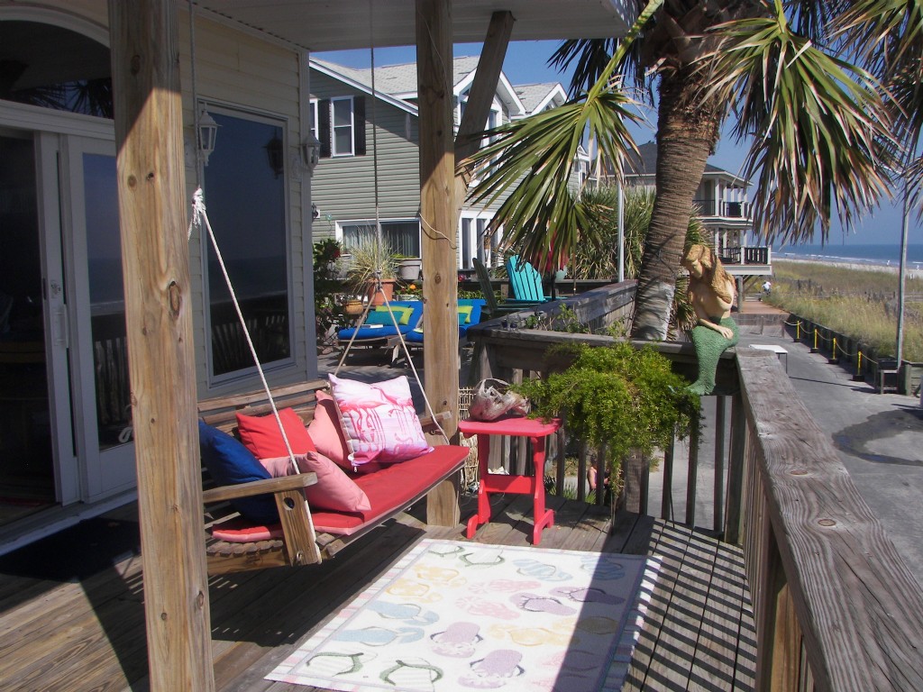 This home is directly OCEAN FRONT on Myrtle Beach's Grand Strant. Our houses is beautifully decorated in vibrant Caribbean colors and has parking underneath. We have 5 tvs with expanded cable, DVD and VCR players, CD player, outdoor grill, washer/dryer and completely furnished for you to enjoy a relaxing vacation.