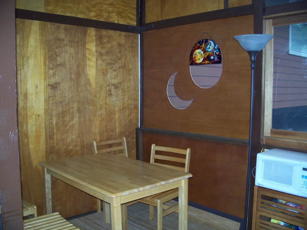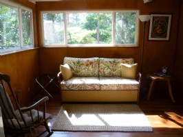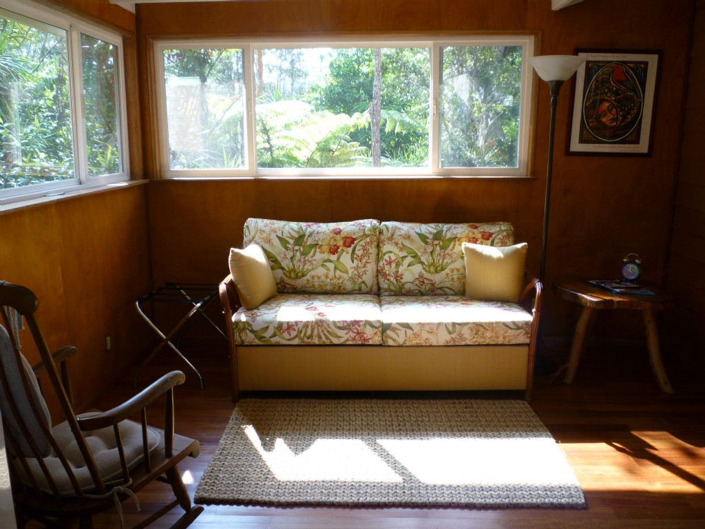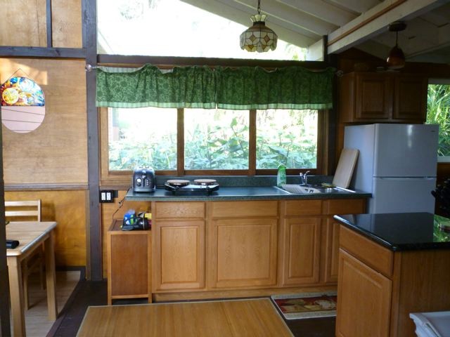Fully furnished cottage with a living room, kitchen and bedroom with a queen bed, Brazilian cherry hardwood floors, desk, rocker reading chair, 5-disc CD player / radio, TV (for movies only), full bathroom, screened outdoor kitchenette with breakfast nook, includes: refrigerator, hot plate, toaster, rice cooker, coffee maker,french press, and all utensils. Your own barbeque and charcoals are outside for your use. Towels, linens, beach towels, beach chairs, and beach mats are provided. Snorkel googles and cooler are also provided for your use. There is an ethernet wire for your high-speed hook-up to the internet. Clean and comfortable retreat cottage on sacred grounds.