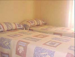 Main bedroom has a double bed. Second and third bedrooms each have two individual beds.