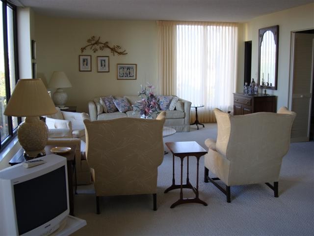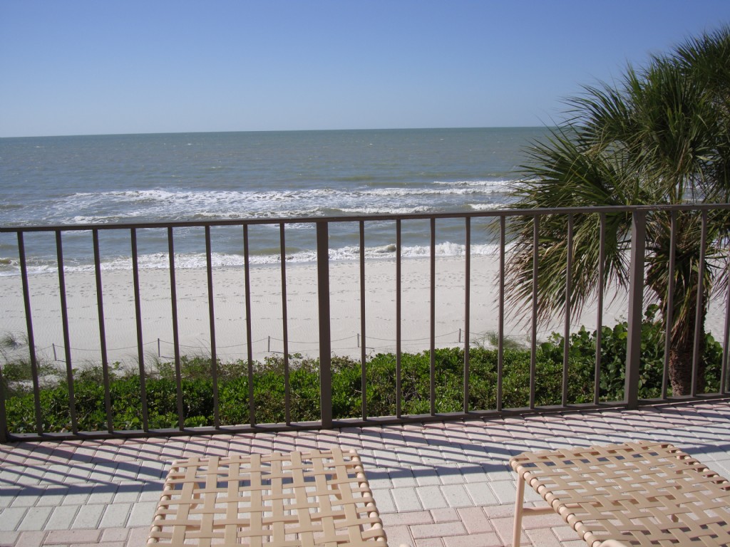 3 bedrooms, 3 baths in second balcony on the beach of Naples with view of the gulf (ocean) while sitting in the family room, well furnished, well equipped. Large swimming pool facing the beach. Chase longs present. beach equipment present. Watersport